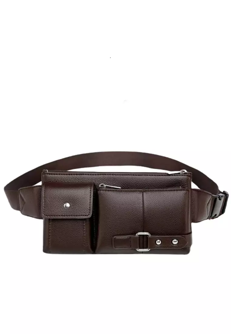 Atera Tas Pinggang Fashion Pria Waistbag Material Kulit Leather ORIGINAL - Brown