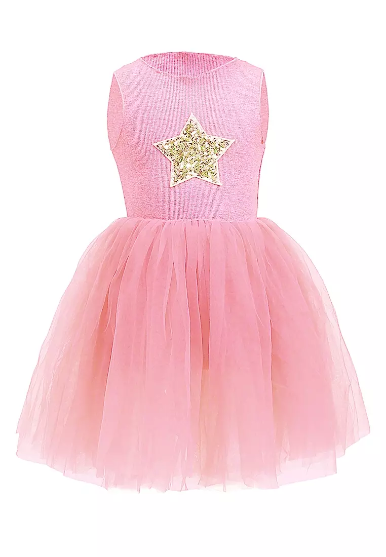 Bianca Dress Anak Perempuan Motif Bintang Gaun Desain Payet Sleeveless Material Cotton ORIGINAL - Pink
