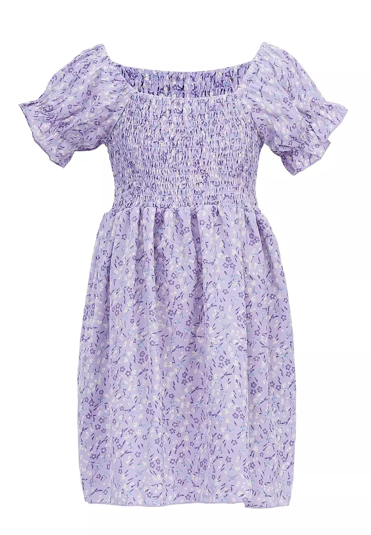 Bianca Gaun Anak Perempuan Flower Motive Kids Dresses Short Sleeve Material Cotton ORIGINAL - Purple