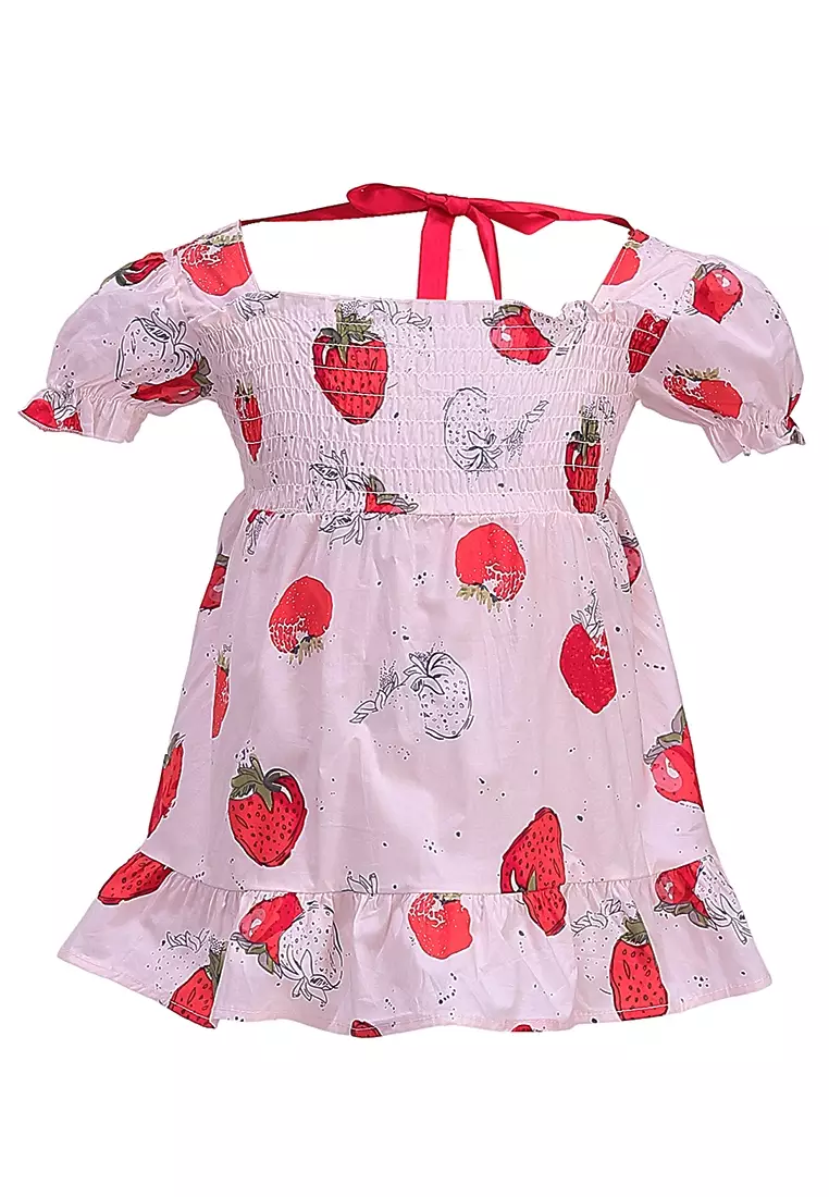 Bianca Gaun Anak Perempuan Motif Strawberry Kids Dresses Short Sleeve Material Cotton ORIGINAL - Pink