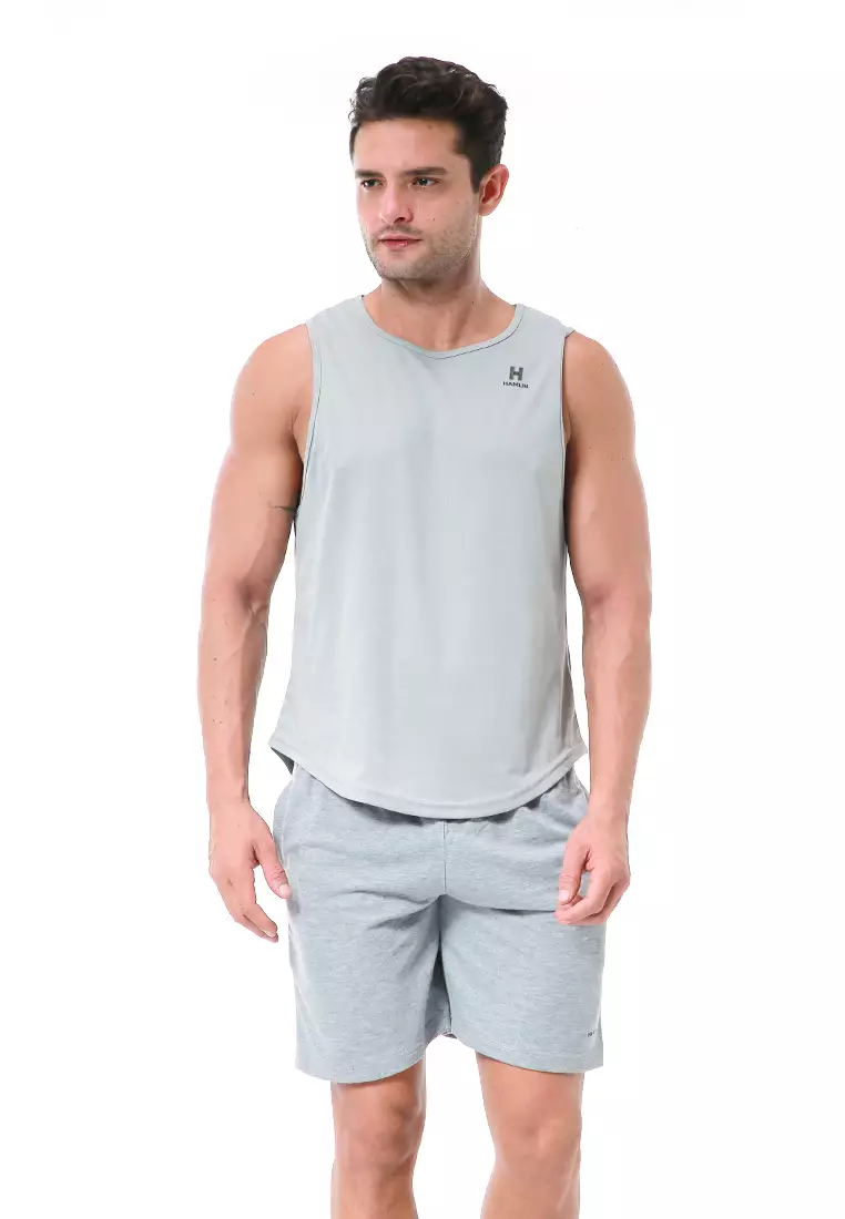 HamlinBobby Atasan Kasual Pria Singlet Gym Motif Polos Sleeveless Sports Shirt Material Polyester Fiber ORIGINAL - Gray1322500.00529000.00