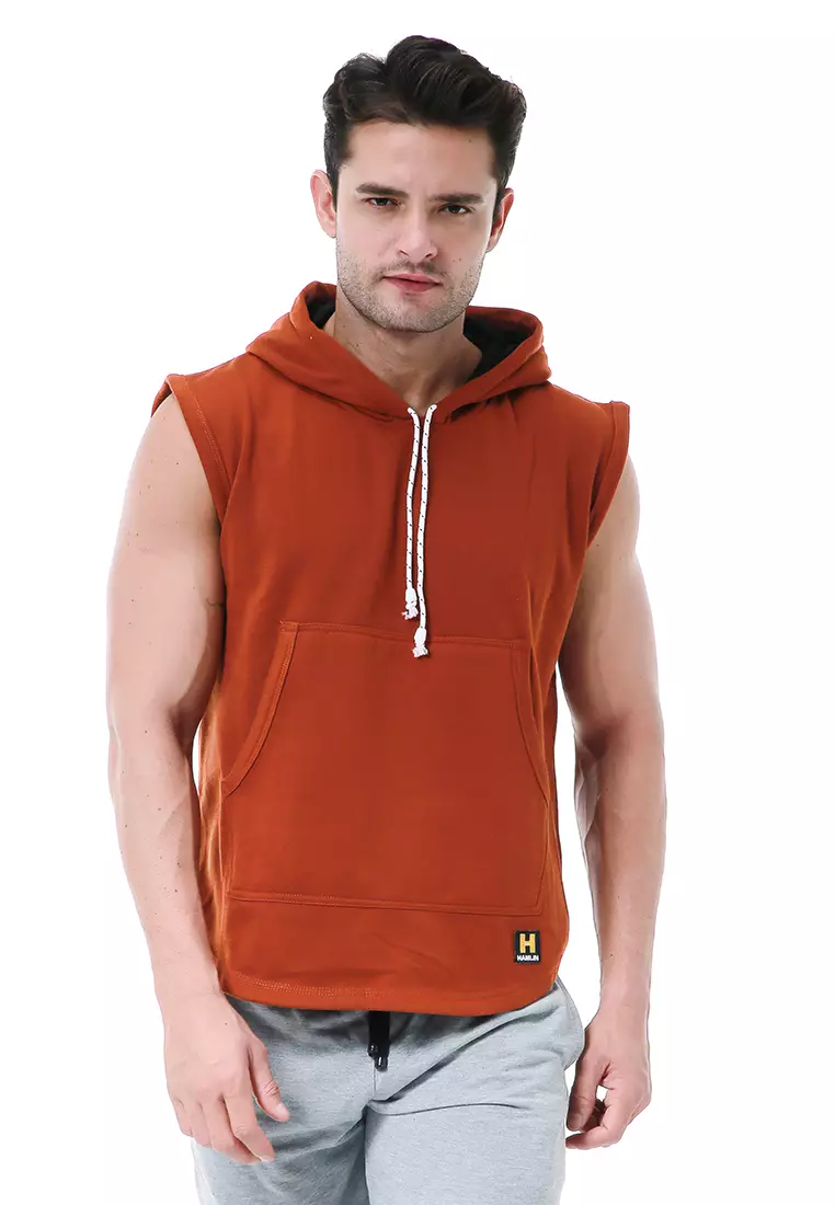 HamlinBobby Atasan Kasual Pria Singlet Hoodie Motif Polos Sweater Tanpa Lengan Material Fleece ORIGINAL - Brown1340000.00536000.00