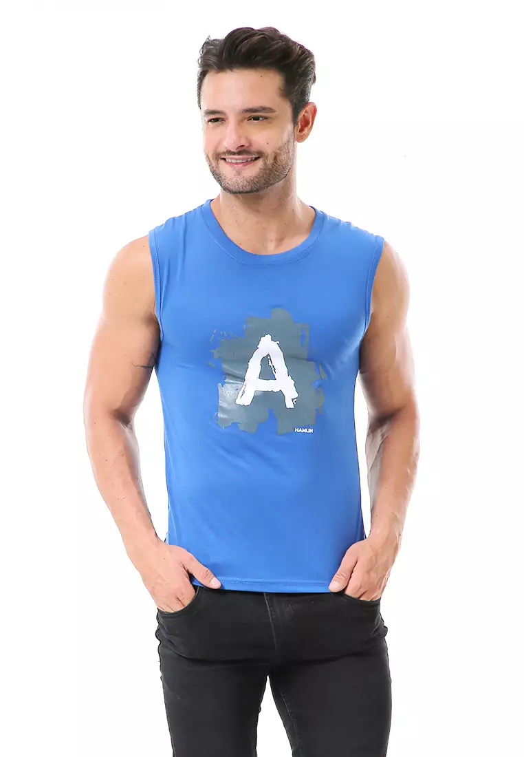 HamlinBobby Atasan Kasual Pria Singlet Motif Huruf A Atasan Tanpa Lengan Material Cotton ORIGINAL - Blue805000.00322000.00