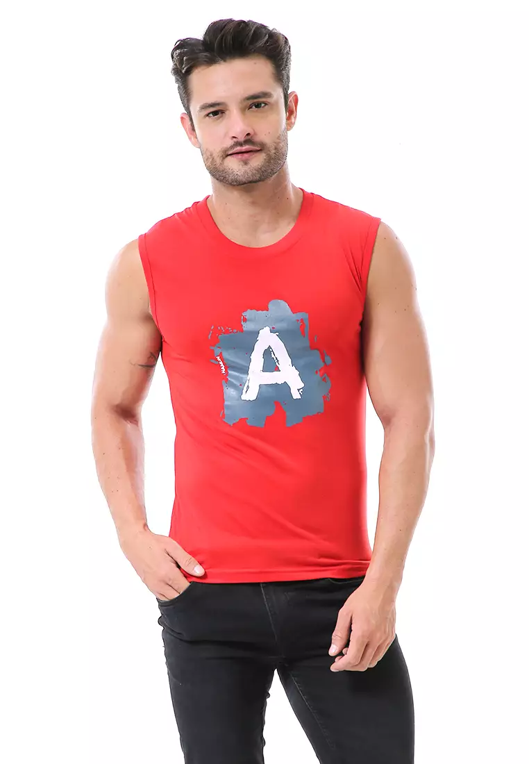 HamlinBobby Atasan Kasual Pria Singlet Motif Huruf A Atasan Tanpa Lengan Material Cotton ORIGINAL - Red805000.00322000.00