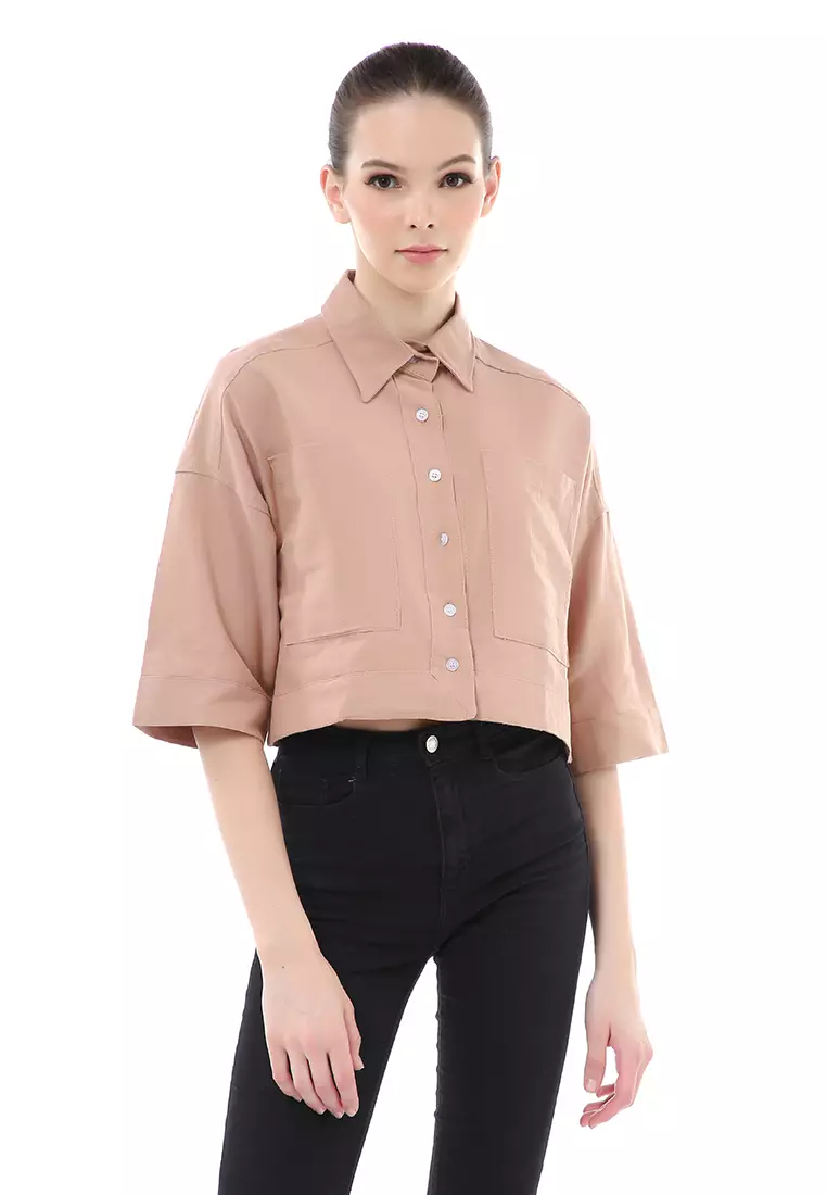 HamlinBrielle Atasan Wanita Kemeja Crop Oversize Shirt Lengan Panjang Material Linen ORIGINAL - Caramel1410000.00564000.00