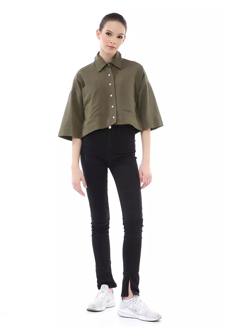 HamlinBrielle Atasan Wanita Kemeja Crop Oversize Shirt Lengan Panjang Material Linen ORIGINAL - Olive1410000.00564000.00