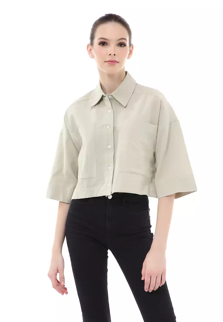 HamlinBrielle Atasan Wanita Kemeja Crop Oversize Shirt Lengan Panjang Material Linen ORIGINAL - Sage1410000.00564000.00