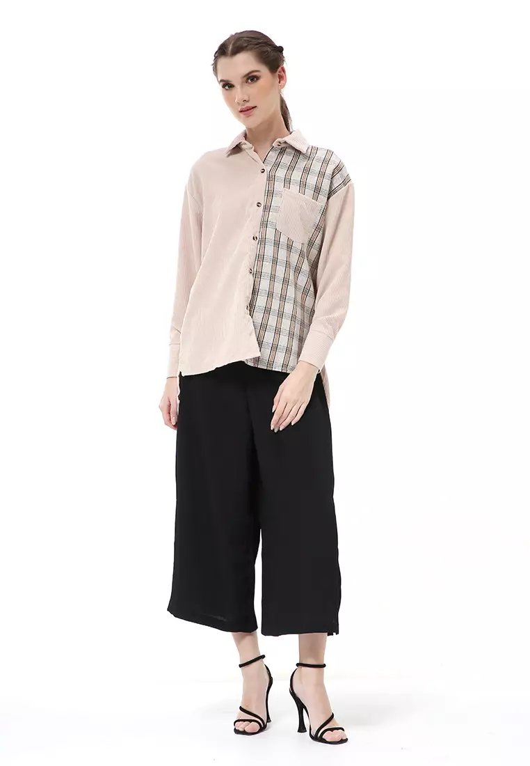 Brielle Atasan Wanita Kemeja Lengan Panjang Kombinasi Model Material Coduroy Polyester ORIGINAL - Apricot