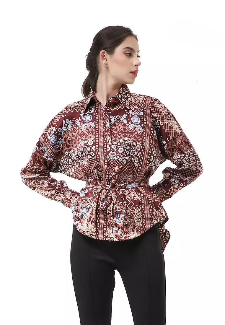 HamlinBrielle Kemeja Wanita Lengan Panjang With Tali Pinggang Elegant Design Material Cotton ORIGINAL - Red2042500.00817000.00