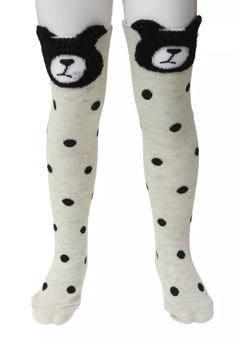 Candie Kaos Kaki Panjang Anak Perempuan Motif Bear Kids Long Socks Material Cotton ORIGINAL - White Black