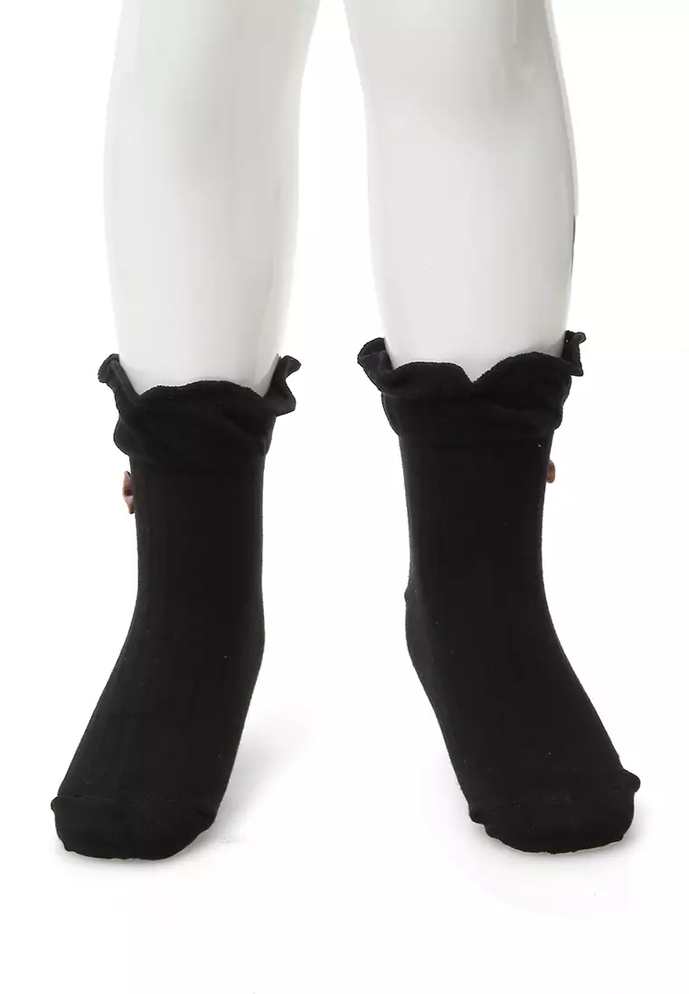 Candie Kaos Kaki Pendek Anak Wanita Bow Tie Ruffle Children's Socks Comportable Material Cotton ORIGINAL - Black