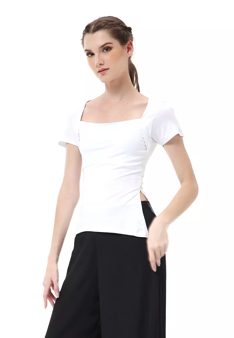 Cerise Atasan Wanita Simple Casual T- Shirt Lengan Pendek Material Rayon Lycra ORIGINAL - White