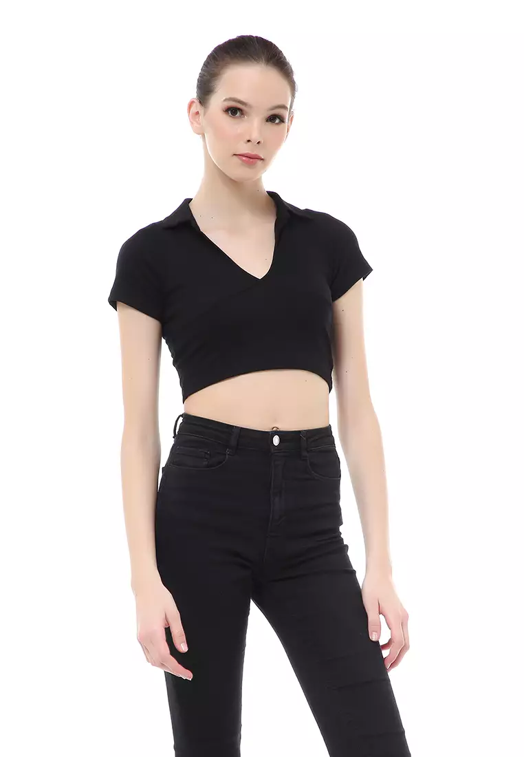 Cerise Crop Top Kaos Pendek Wanita T-Shirt Short Sleeve Plain Motive Material Cotton ORIGINAL - Black
