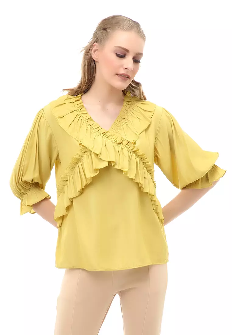 HamlinCheva Blouse Atasan Kasual Wanita Long Sleeve Pita Depan Staylish Material Cotton ORIGINAL - Yellow1390000.00556000.00