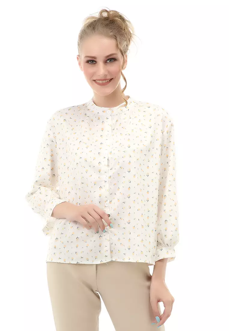 Cheva Blouse Atasan Wanita Kasual Lengan Panjang Motif Bunga Material Chiffon ORIGINAL - White