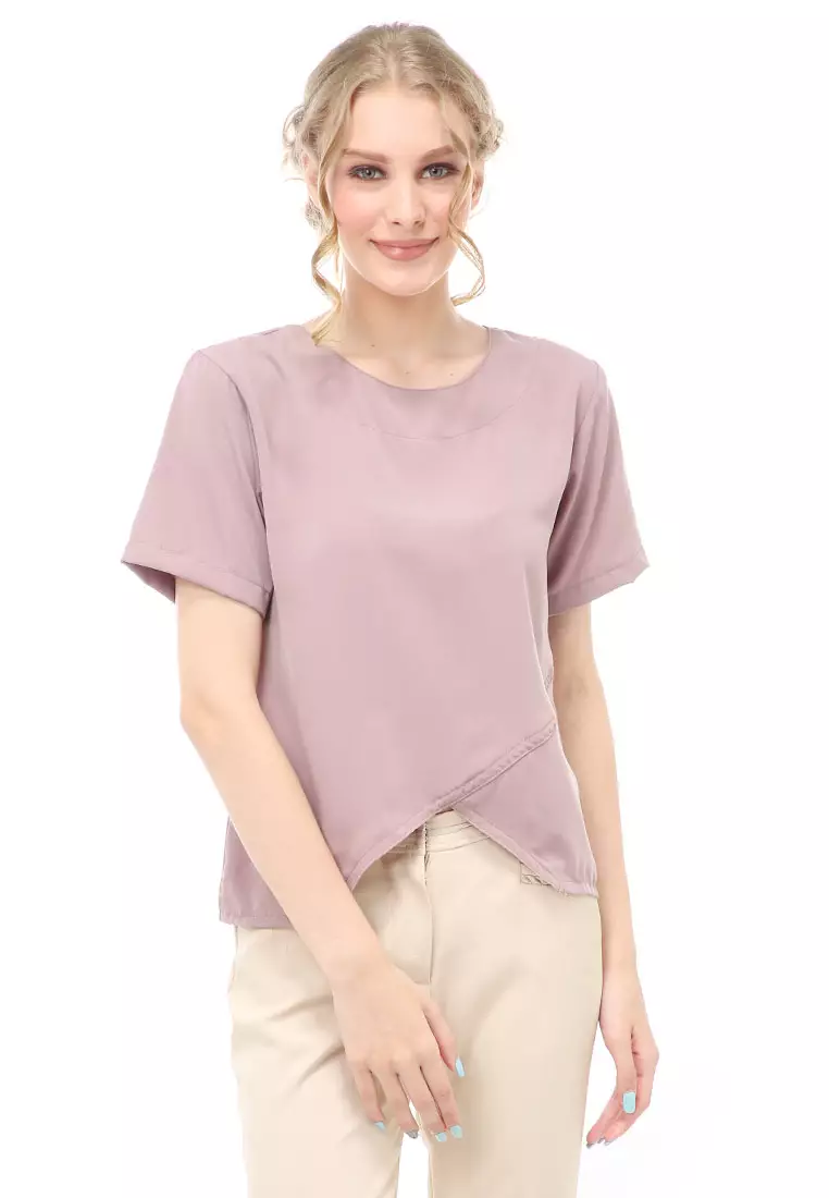 HamlinCheva Blouse Atasan Wanita Kasual Lengan Pendek Model Asymetris Material Wolfis ORIGINAL1173000.00469000.00
