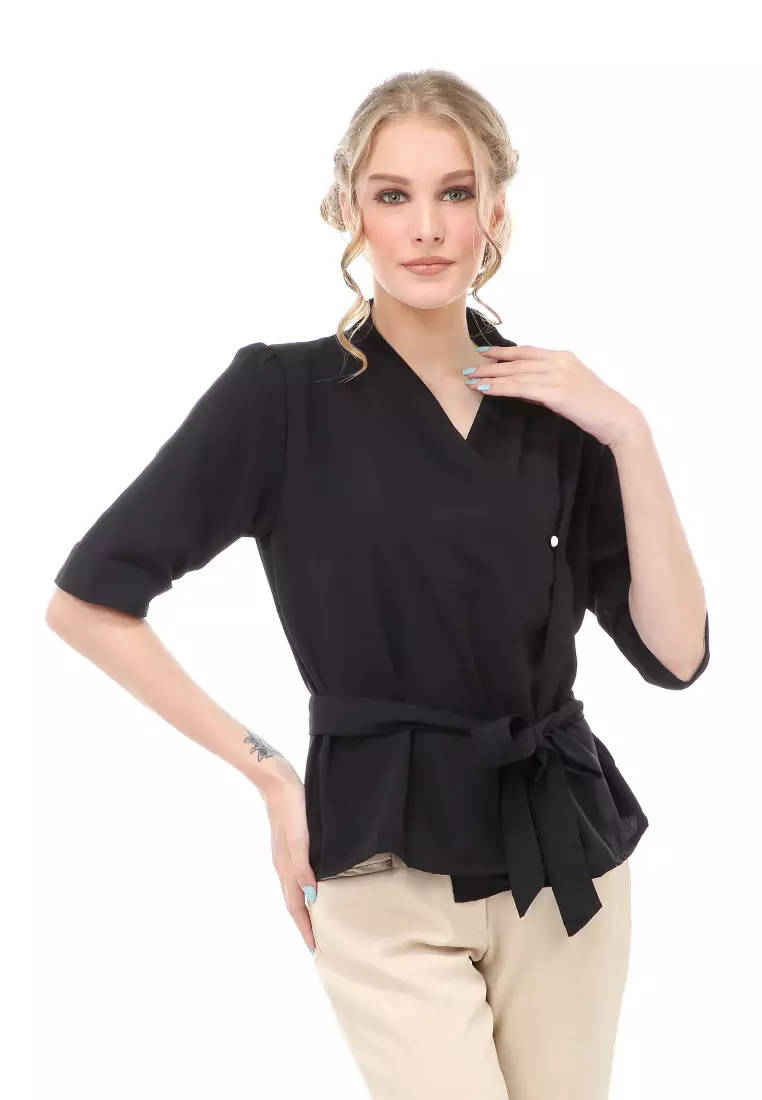 Cheva Blouse Atasan Wanita Kasual Model Tali Ikat Pinggang Material Wolfis ORIGINAL - Black