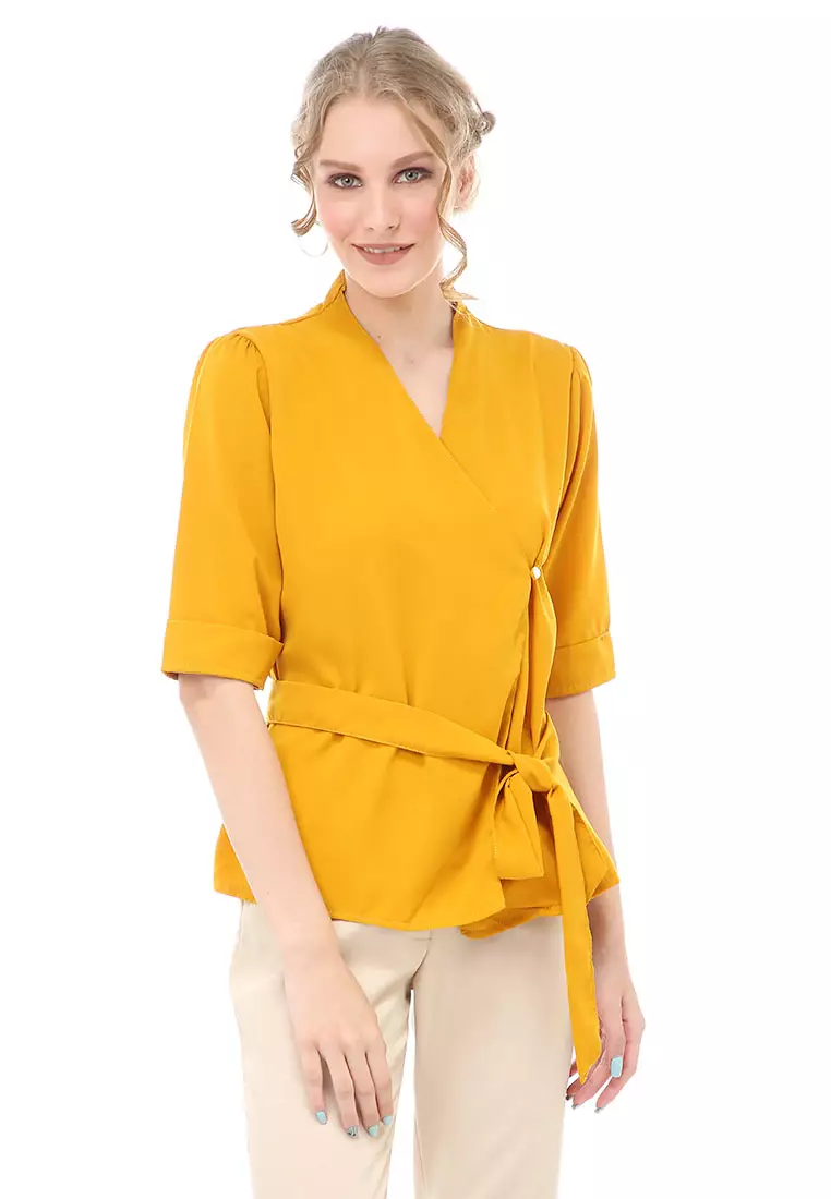 Cheva Blouse Atasan Wanita Kasual Model Tali Ikat Pinggang Material Wolfis ORIGINAL - Mustard