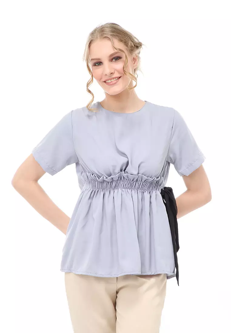 HamlinCheva Blouse Atasan Wanita Kasual Pinggang Karet Pita Ikat Simple Material Wolfis ORIGINAL - Light Gray1180000.00472000.00