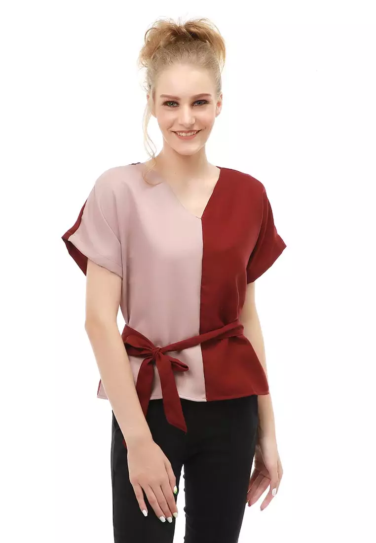 HamlinCheva Blouse Atasan Wanita Kasual Tali Ikat Samping Kombinasi 2 Warna Material Moscrepe ORIGINAL835000.00334000.00