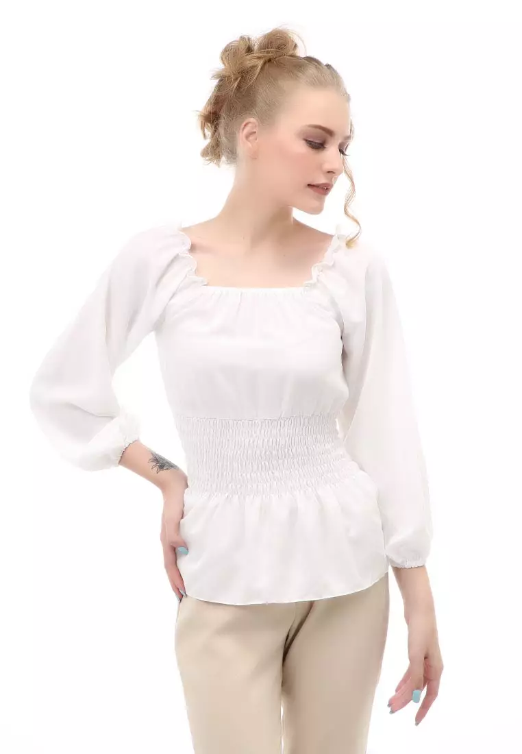 HamlinCheva Blouse Atasan Wanita Sabrina Karet Pinggang Lengan Panjang Casual Shirt Long Sleeve Material Wolfis ORIGINAL1447500.00579000.00