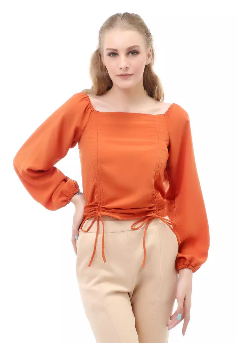 HamlinCheva Blouse Atasan Wanita Sabrina Tali Lengan Panjang Casual Top Long Sleeve Comfortable Material Wolfis ORIGINAL - Bata1355000.00542000.00