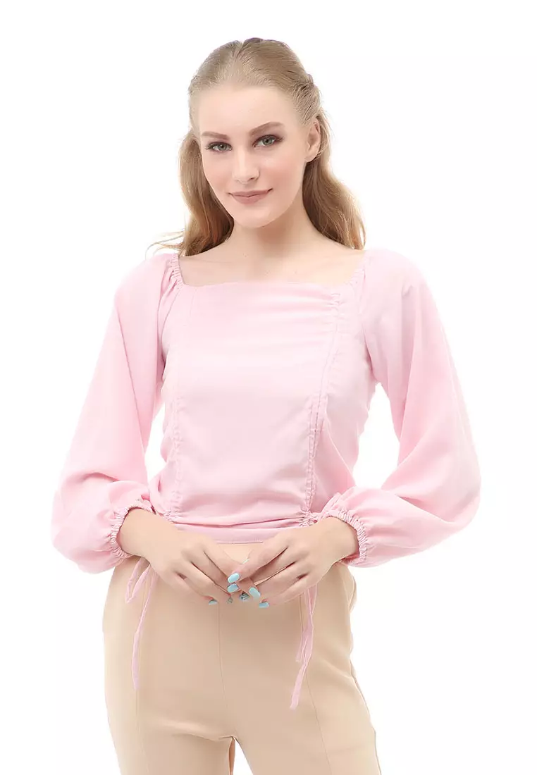 HamlinCheva Blouse Atasan Wanita Sabrina Tali Lengan Panjang Casual Top Long Sleeve Comfortable Material Wolfis ORIGINAL - Salem1355000.00542000.00
