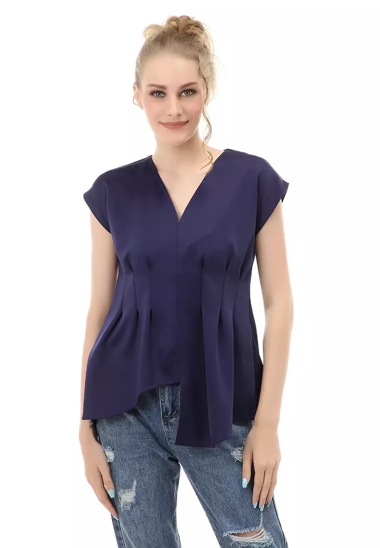 Cheva Top Blouse Wanita Lengan Pendek Material Prime Scuba ORIGINAL - Navy