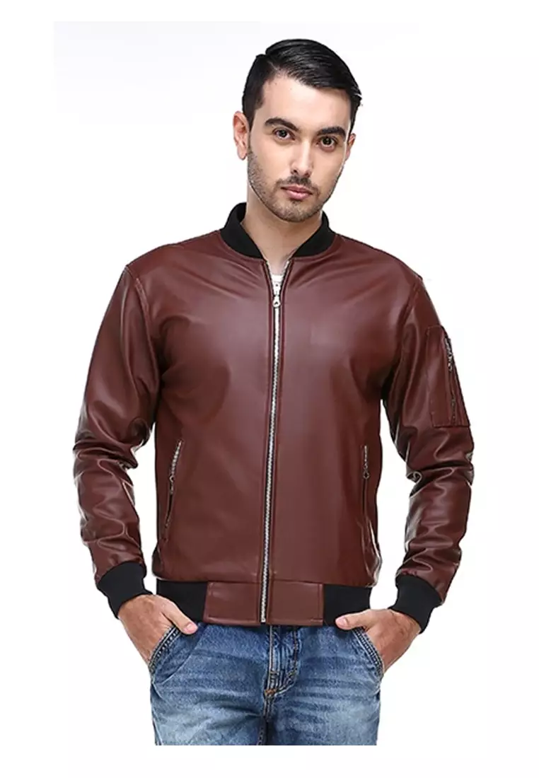 Clover Jaket Bomber Pria Now Ori Soft Material Leather Kulit ORIGINAL - Brown
