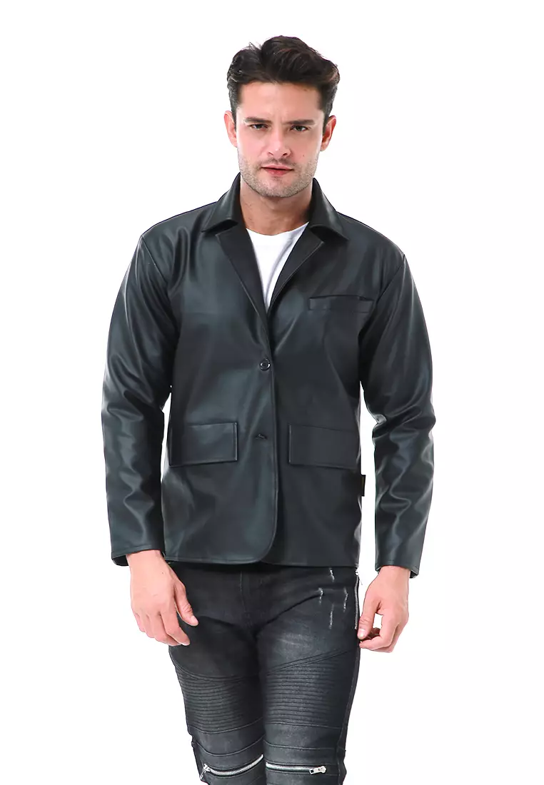Danny Blazer Casual Formal Pria Outerwear Lengan Panjang Motif Polos Material Leather ORIGINAL - Black