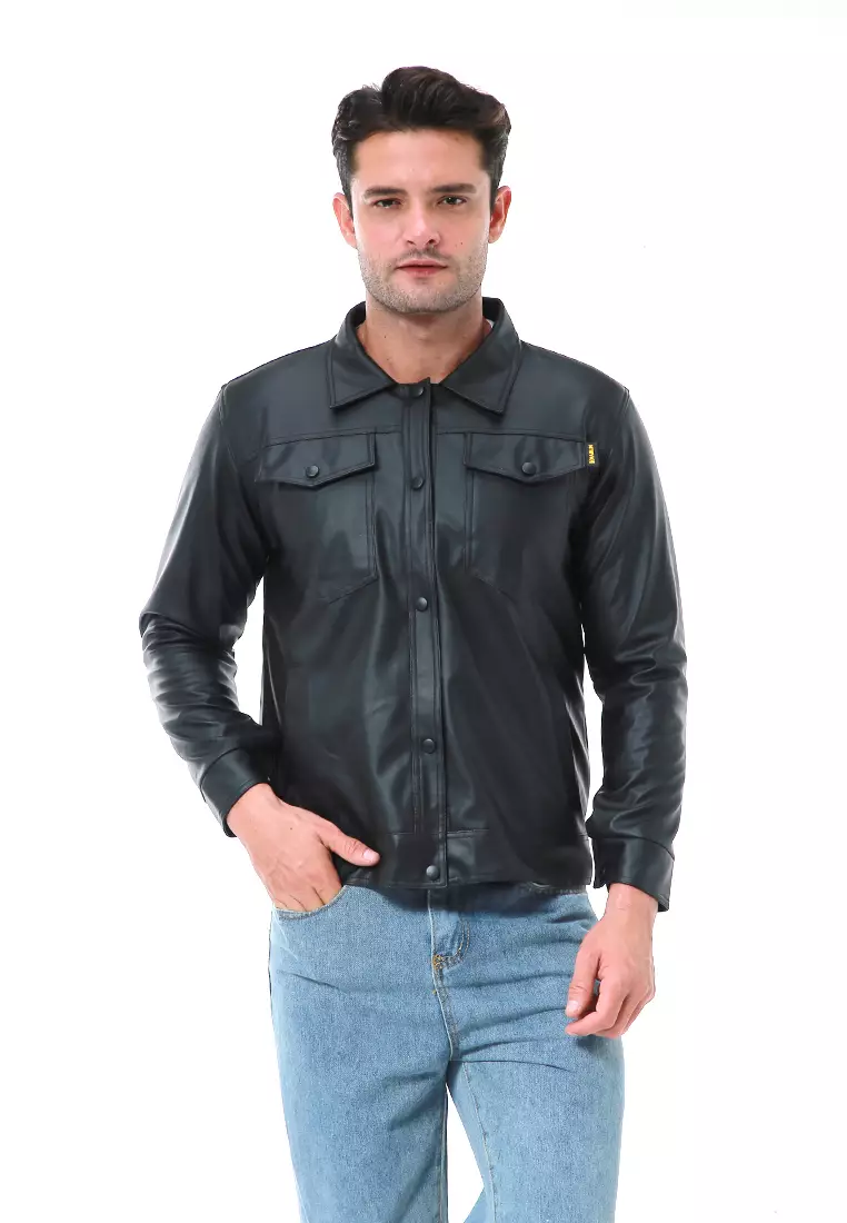 Danny Outerwear Pria Big Pocket Casual Jacket Lengan Panjang Material Leather ORIGINAL - Black