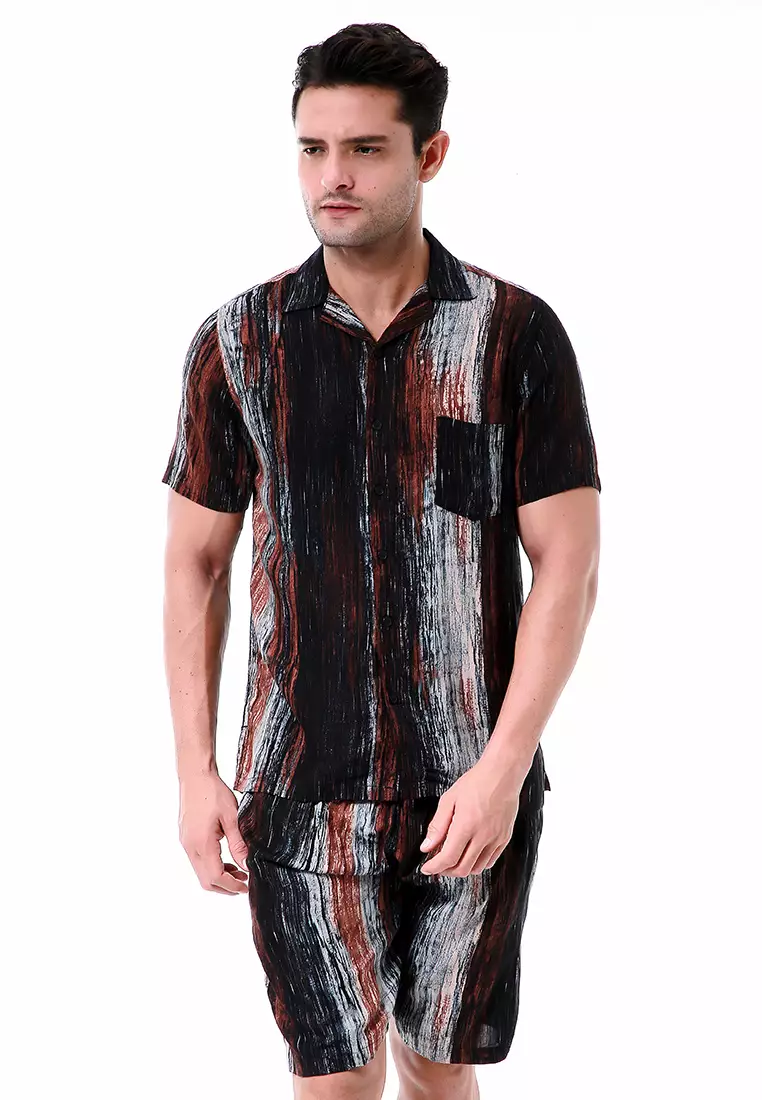 HamlinDeon Piyama Pria Fannan Motive Kemeja One Set Lengan Pendek Material Rayon ORIGINAL - Brown1940000.00776000.00