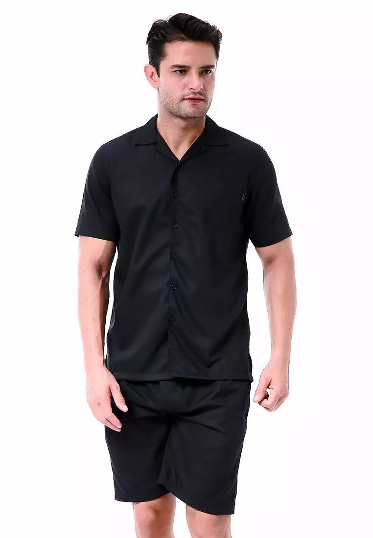 HamlinDeon Piyama Pria Plain Motive Kemeja One Set Lengan Pendek Material Cotton ORIGINAL - Black1940000.00776000.00