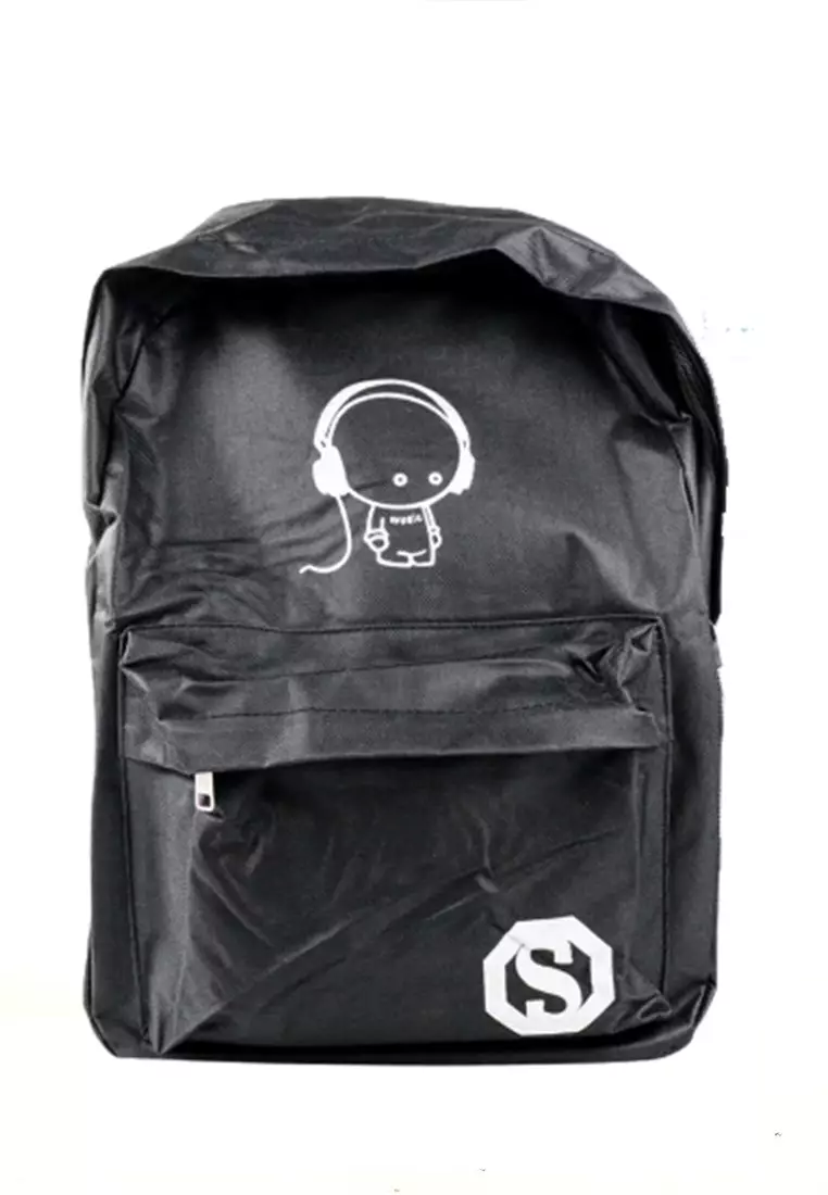 Doomb Backpack Tas Ransel Material Oxford Cloth Glow in The Dark Model Music Kid Stylish Gadget Bag ORIGINAL - Black