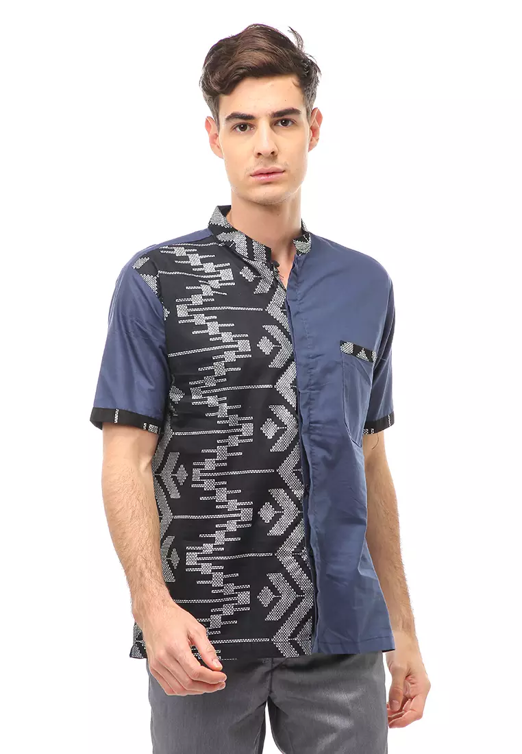 HamlinDwan Atasan Formal Pria Kemeja Koko Batik Lengan Pendek Material Cotton ORIGINAL - Navy1430000.00572000.00