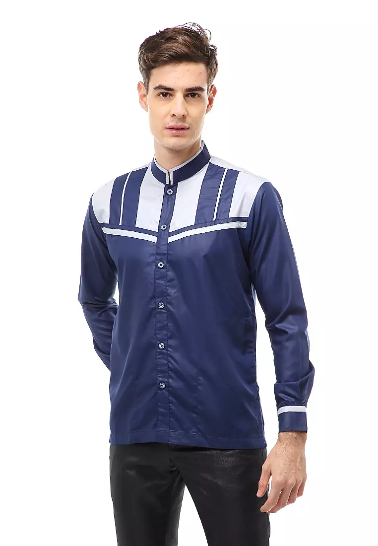 Dwan Atasan Formal Pria Kemeja Koko Beam Motive Long Sleeve Material Cotton ORIGINAL- Navy