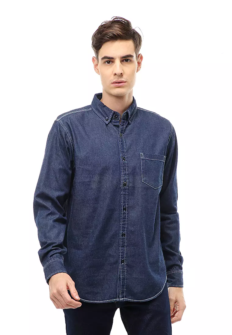 HamlinDwan Atasan Kasual Kemeja Jeans Pria Slim Fit Lengan Panjang Material Denim ORIGINAL - Navy2727500.001091000.00