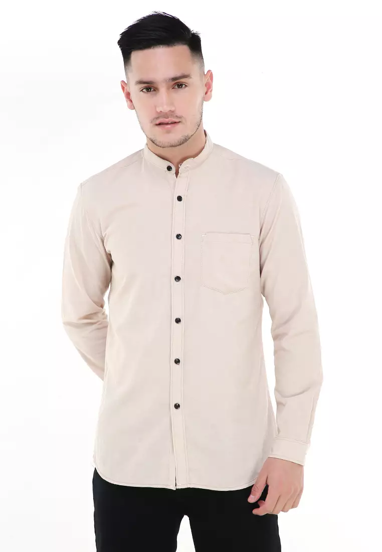 Dwan Atasan Kemeja Pria Premium Casual Formal Longsleeve Shirt Material Cotton ORIGINAL - Cream