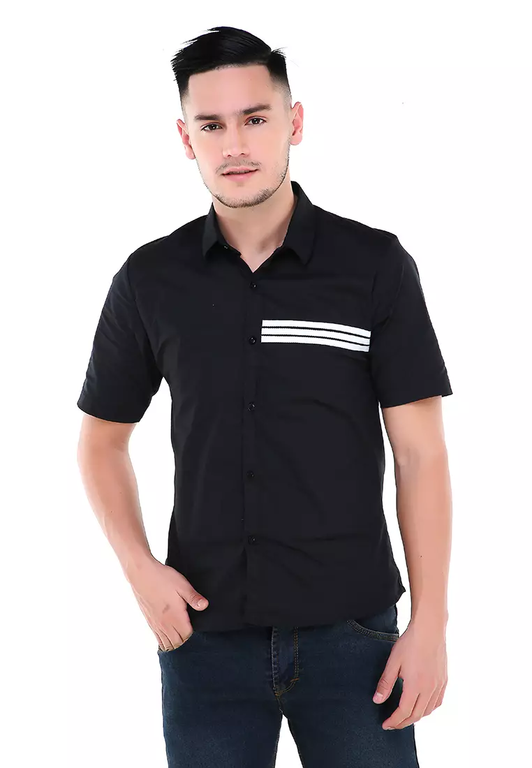 HamlinDwan Atasan Kemeja Pria Three Lines Slim Fit Casual Shortsleeve Shirt Material Cotton ORIGINAL - Black1312500.00525000.00