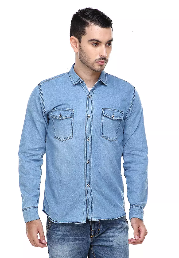 Dwan Casual Shirt Baju Kemeja Jeans Pria Lengan Panjang Material Denim ORIGINAL - Light Blue