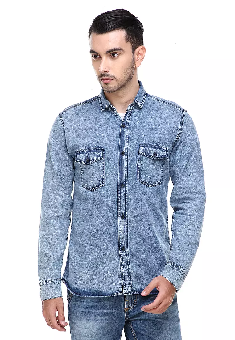 Dwan Casual Shirt Baju Kemeja Jeans Pria Lengan Panjang Material Denim ORIGINAL - Light Tash