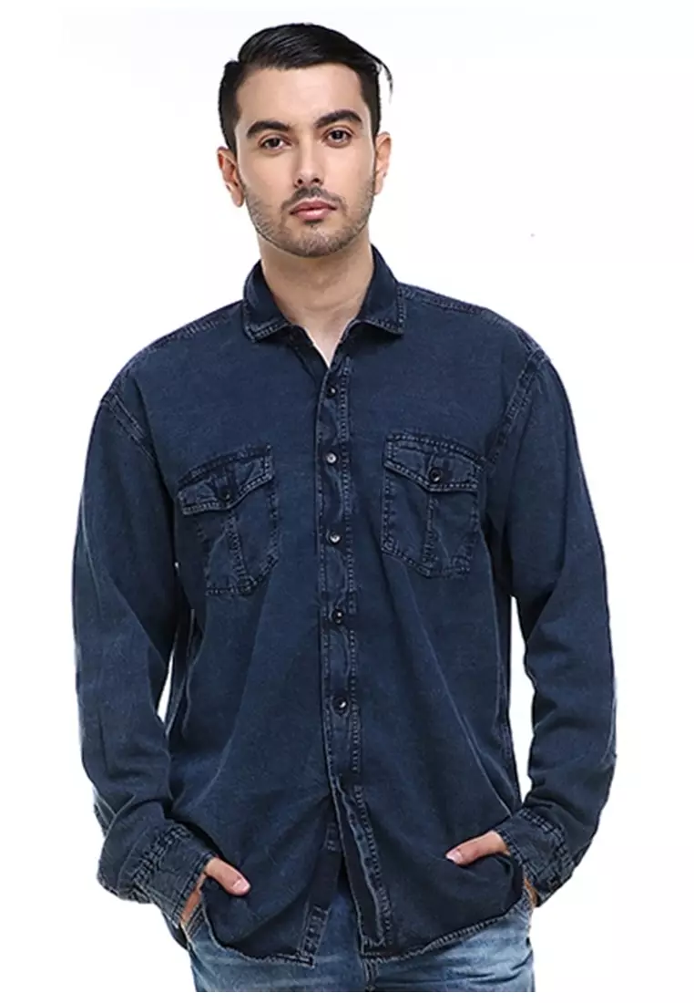 HamlinDwan Casual Shirt Baju Kemeja Over Size Pria Lengan Panjang Two Pockets Material Jeans ORIGINAL - Blue1885000.00754000.00