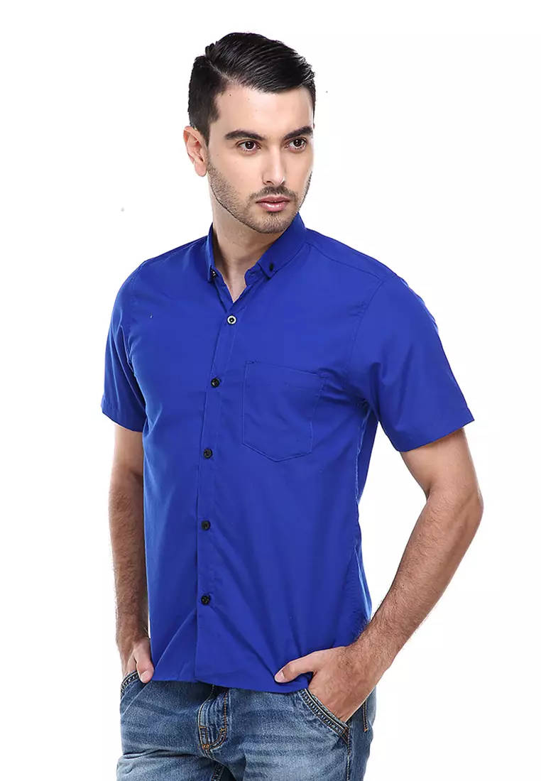 Dwan Casual Shirt Kemeja Polos Pria Lengan Pendek Kasual Formal Material Cotton ORIGINAL - Blue