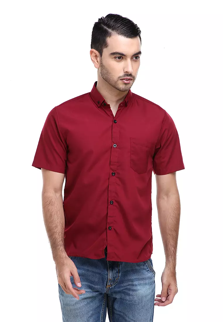 Dwan Casual Shirt Kemeja Polos Pria Lengan Pendek Kasual Formal Material Cotton ORIGINAL - Maroon