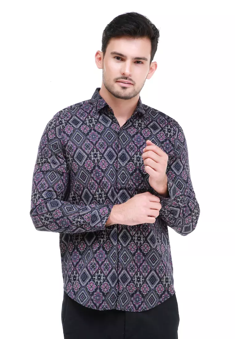 Dwan Kemeja Batik Pria Permata Atasan Formal Longsleeve Shirt Material Cotton ORIGINAL - Black