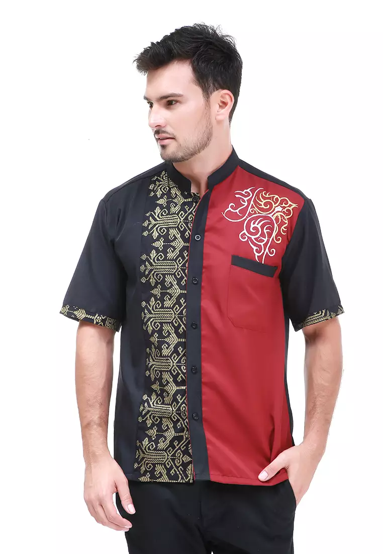 HamlinDwan Kemeja Batik Pria Trident Motives Atasan Formal Shortsleeve Shirt Material Cotton ORIGINAL - Black Red1310000.00524000.00