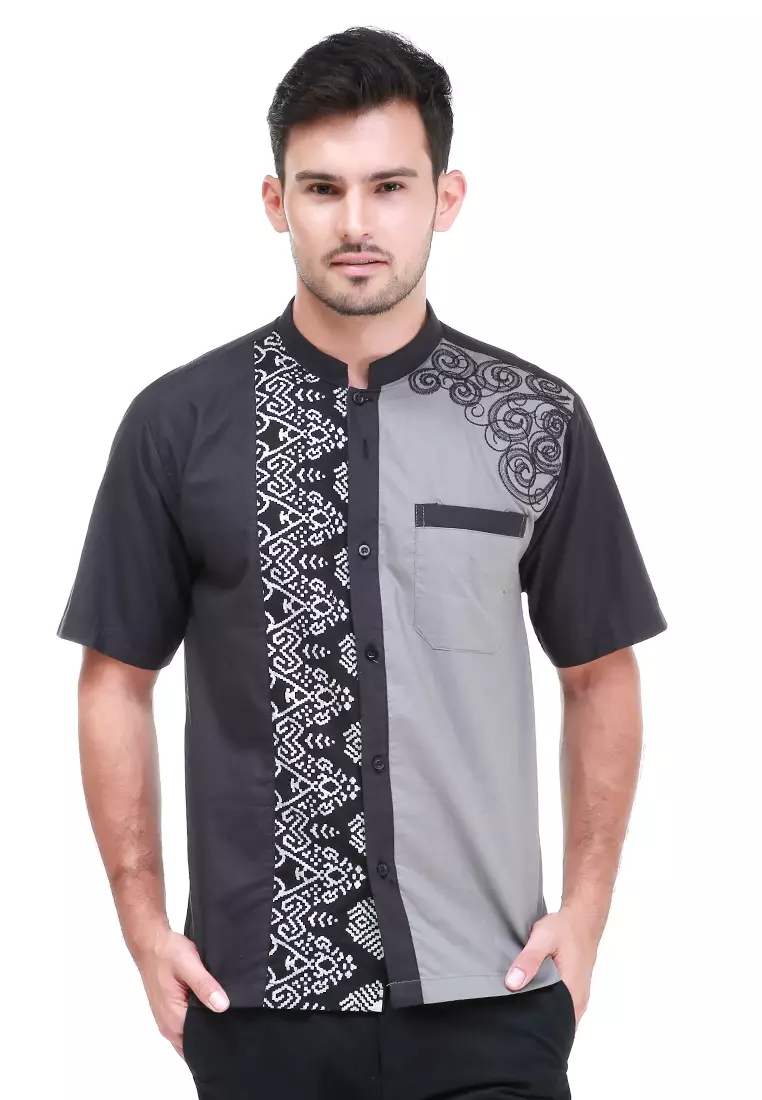 HamlinDwan Kemeja Batik Pria Two Tone Atasan Formal Shortsleeve Shirt Material Cotton ORIGINAL - Black1310000.00524000.00