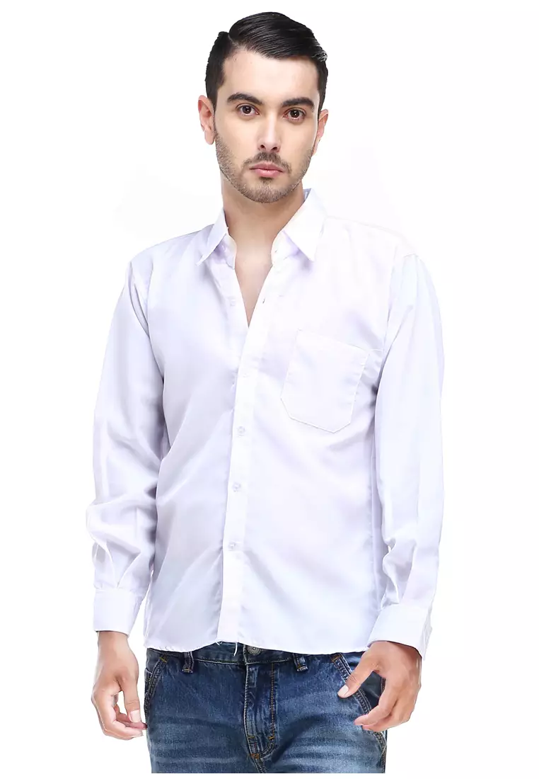 Dwan Kemeja Polos Pria Lengan Panjang Casual Plain Shirt Kasual Formal Material Cotton ORIGINAL - White