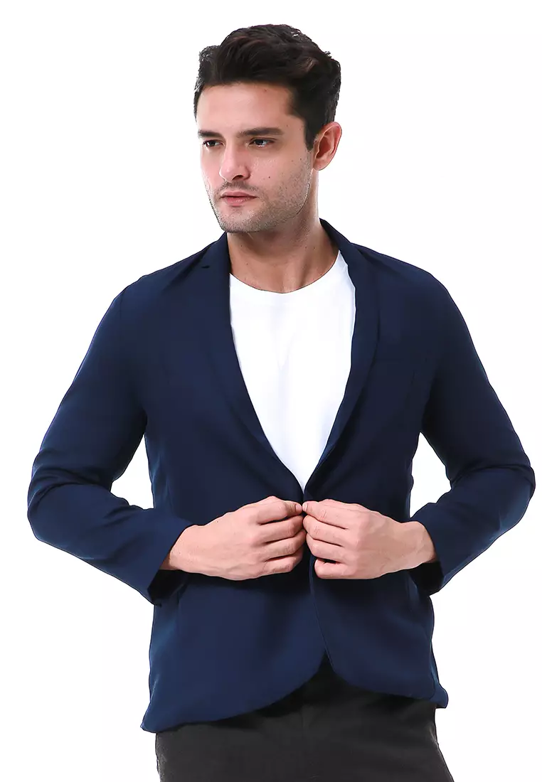 HamlinElard Outerwear Pria Blazer Formal Long Sleeve Motif Polos Material Semiwoll ORIGINAL - Navy2767500.001107000.00