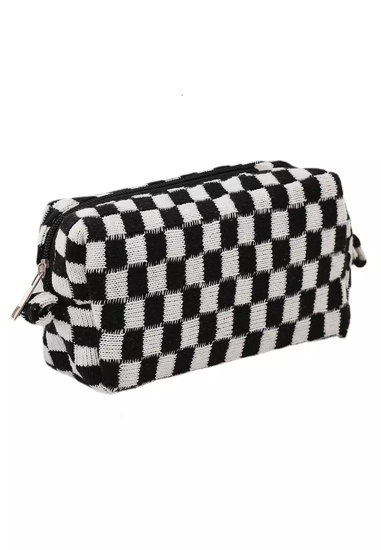 Elmar Tempat Pensil Make Up Wanita Cosmetic Toiletry Bag Pouch Checkerboard Desain Unik Material Kain ORIGINAL - Black White